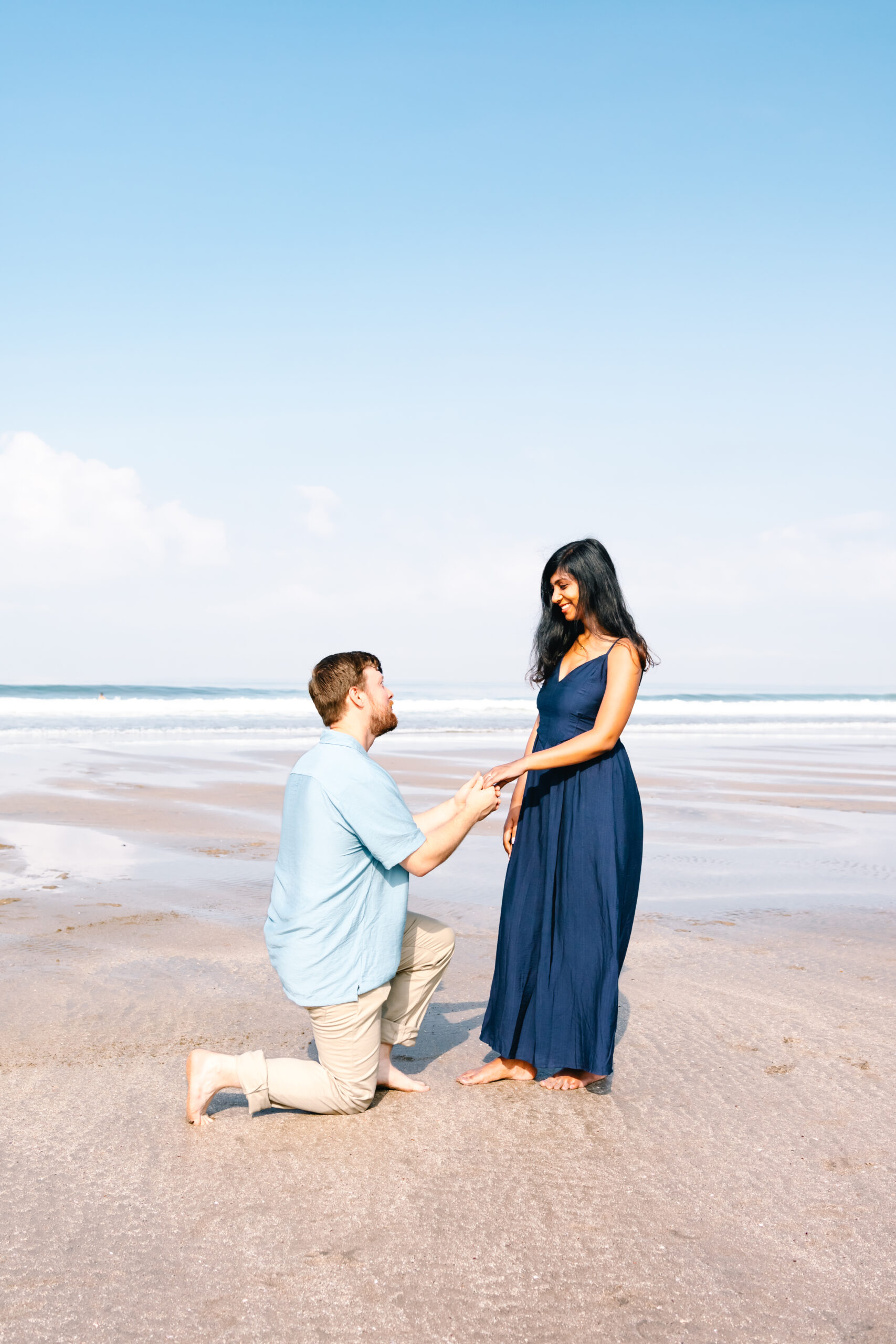Drew . Wedding Proposal . Seminyak Beach Drew ’s Seminyak Beach Photoshoot – Bali Wedding proposal 19 september 2024 – Honeymoon Portfolio . Bali Photographer . Capture Bali Moments Drew’s Proposal on Seminyak BeachThe sky wore a soft blue veil as the tide rolled in, whispering secrets across the black sand. In that quiet stretch of coastline, Drew dropped to one knee, and time seemed to hold its breath. This was more than a proposal, it was a promise, spoken through ocean breeze and heartfelt stillness. Emotions swelled with each crashing wave, echoing the