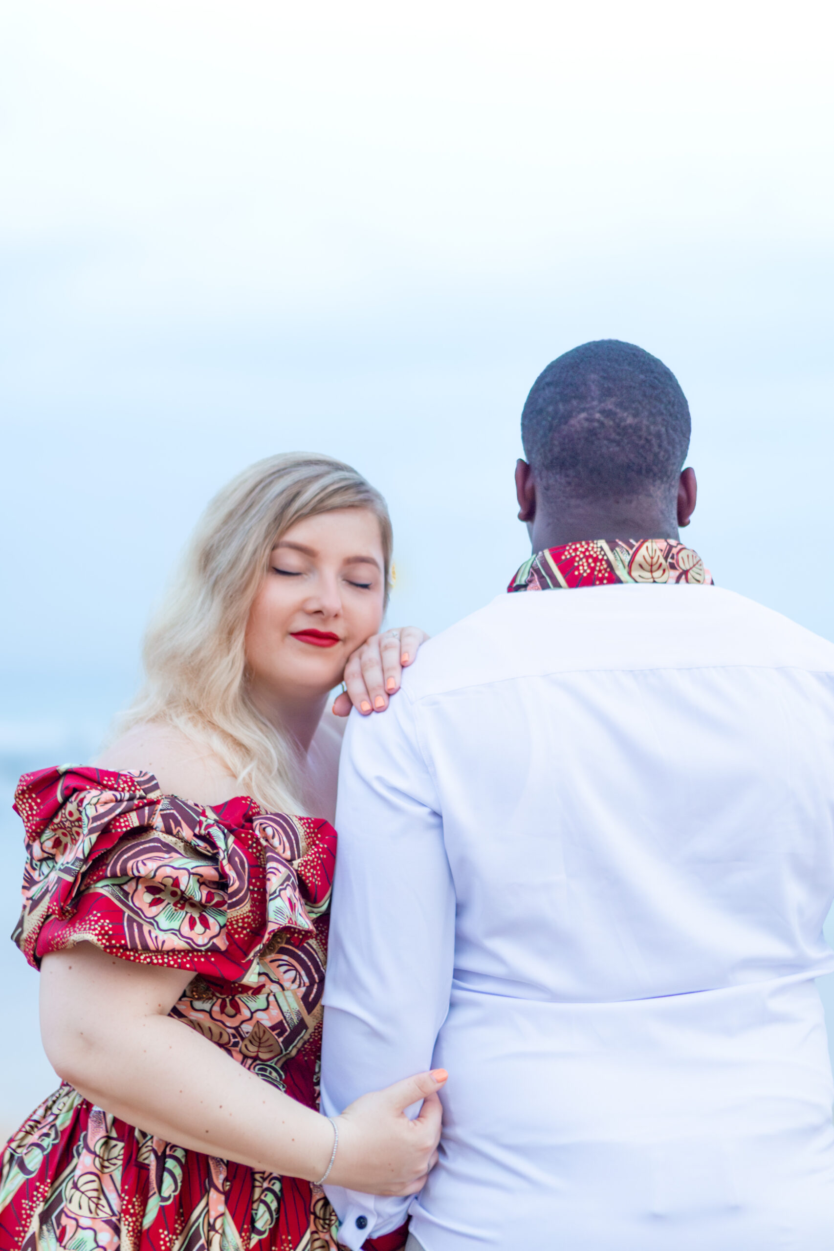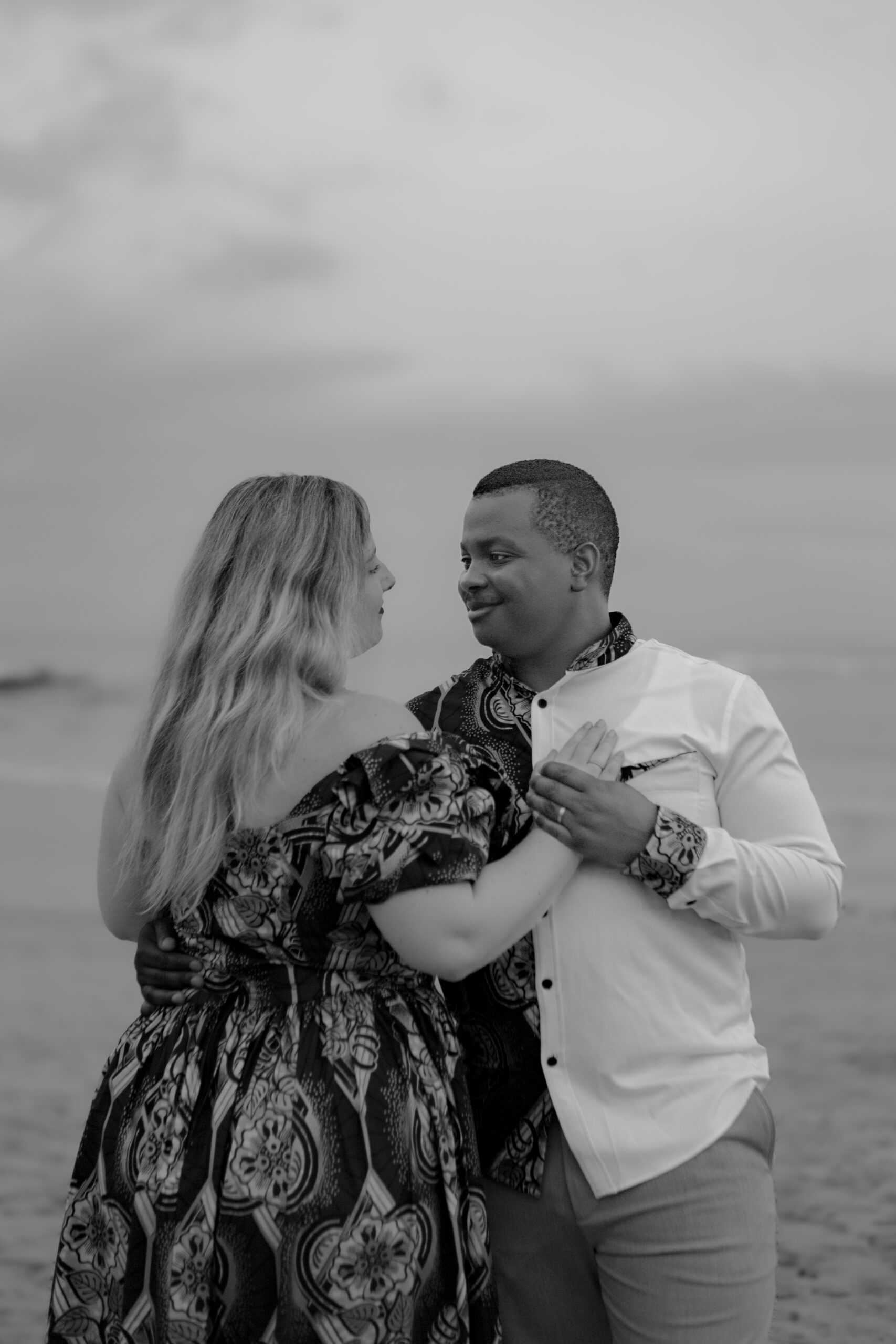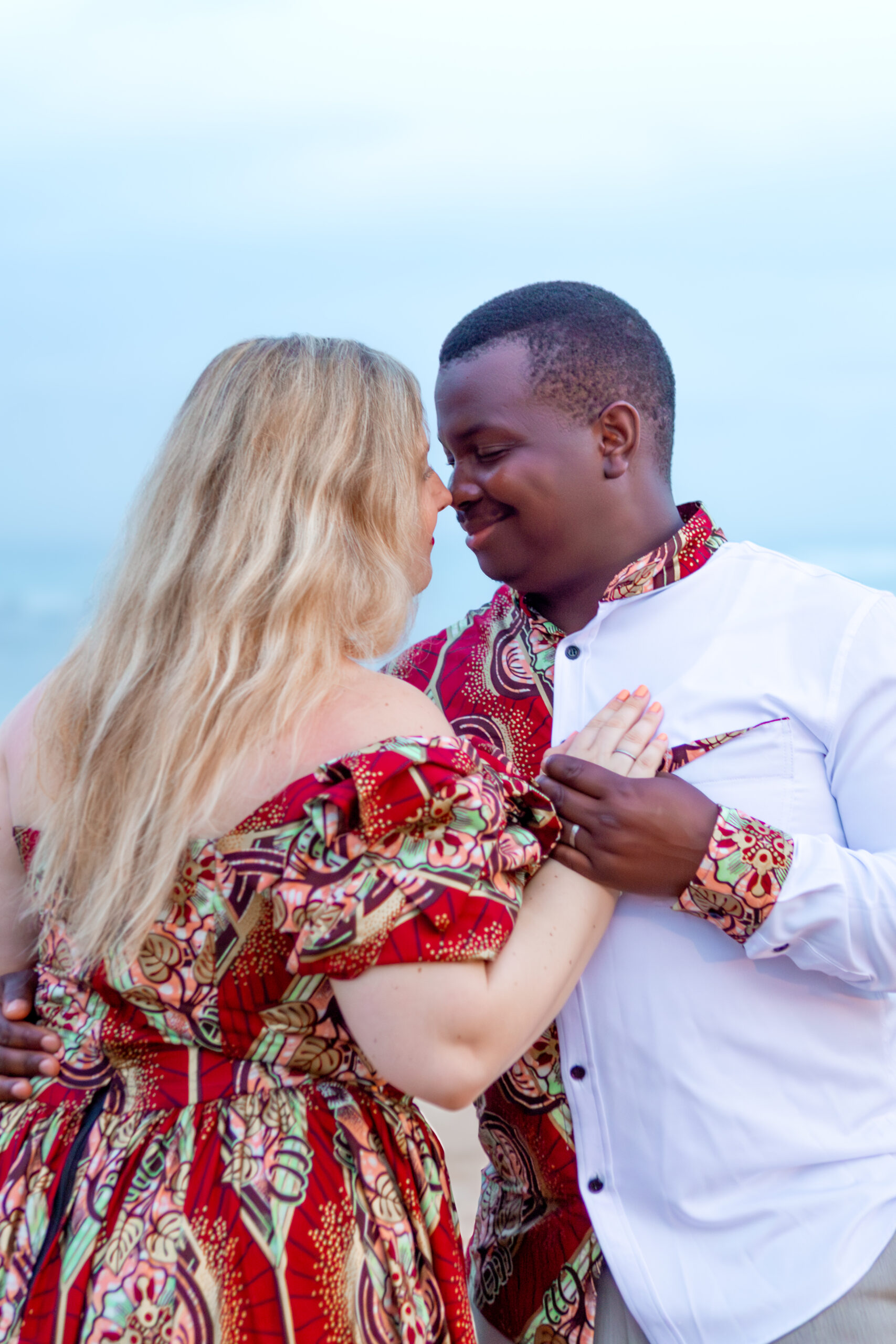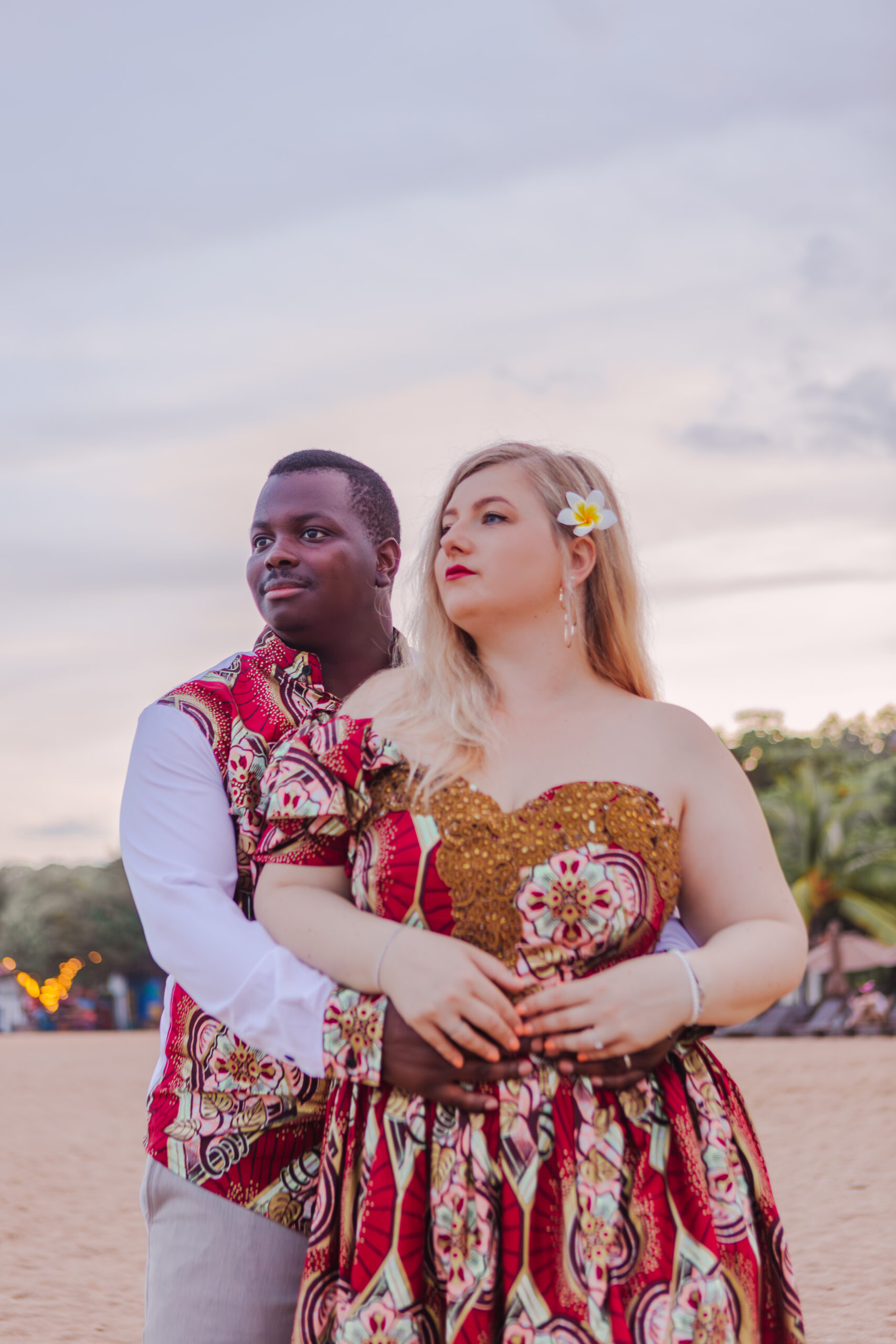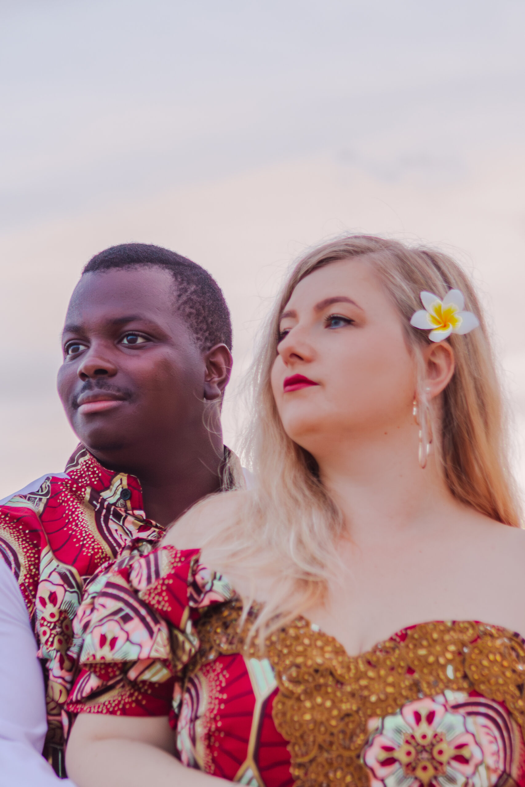 Dressed in elegant traditional African wedding attire, they brought rich culture, bold beauty, and deep connection to every frame, standing hand in hand as the clouds rolled above, creating a powerful, cinematic atmosphere.