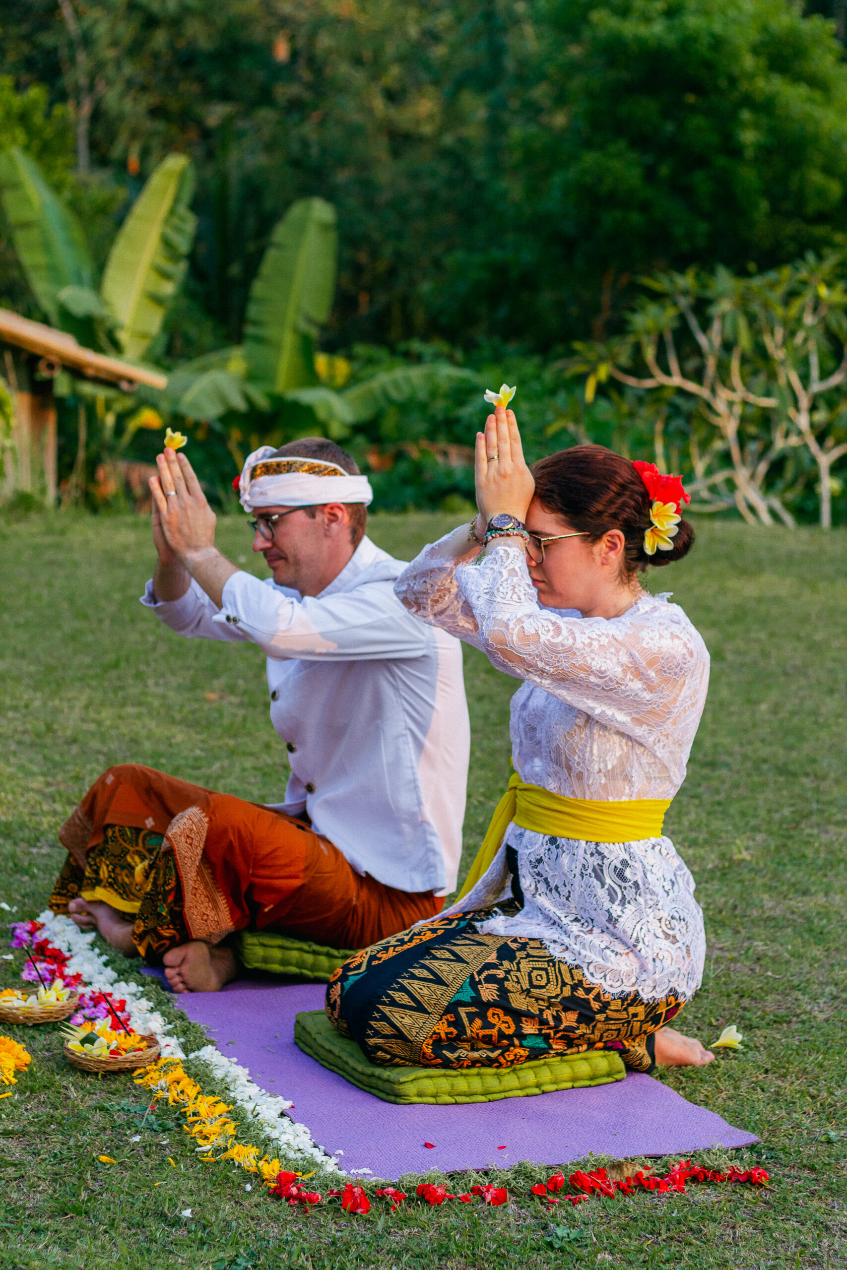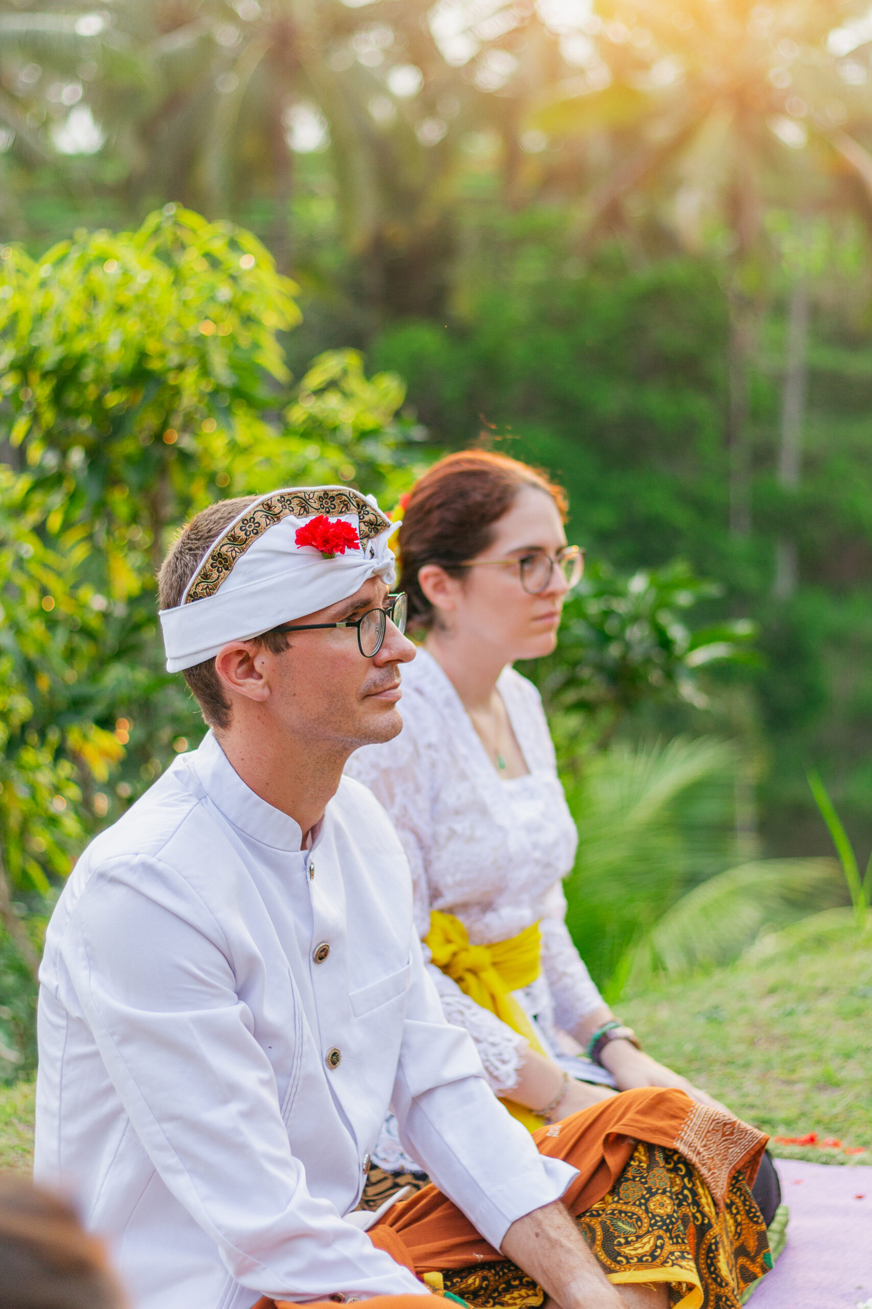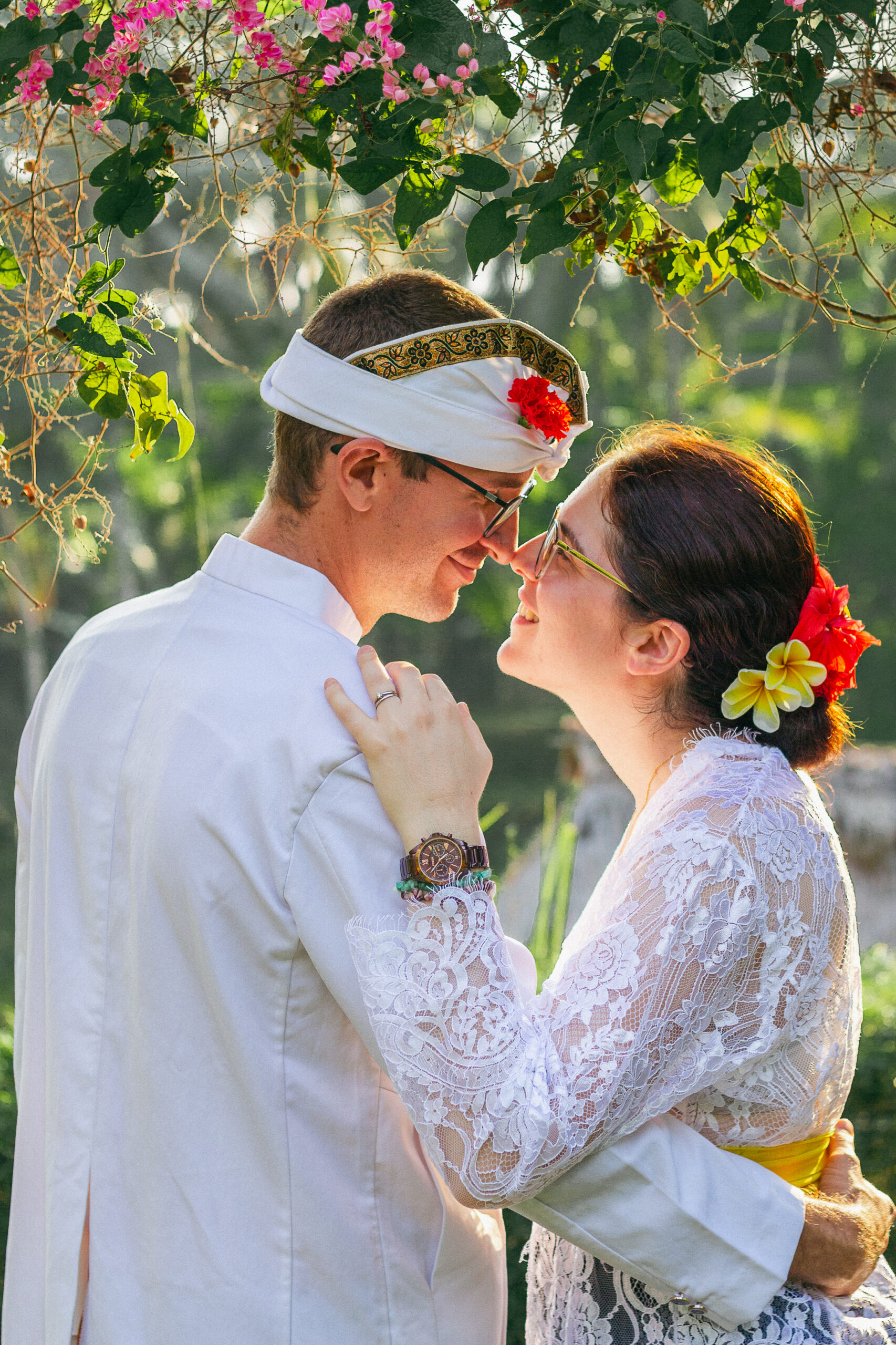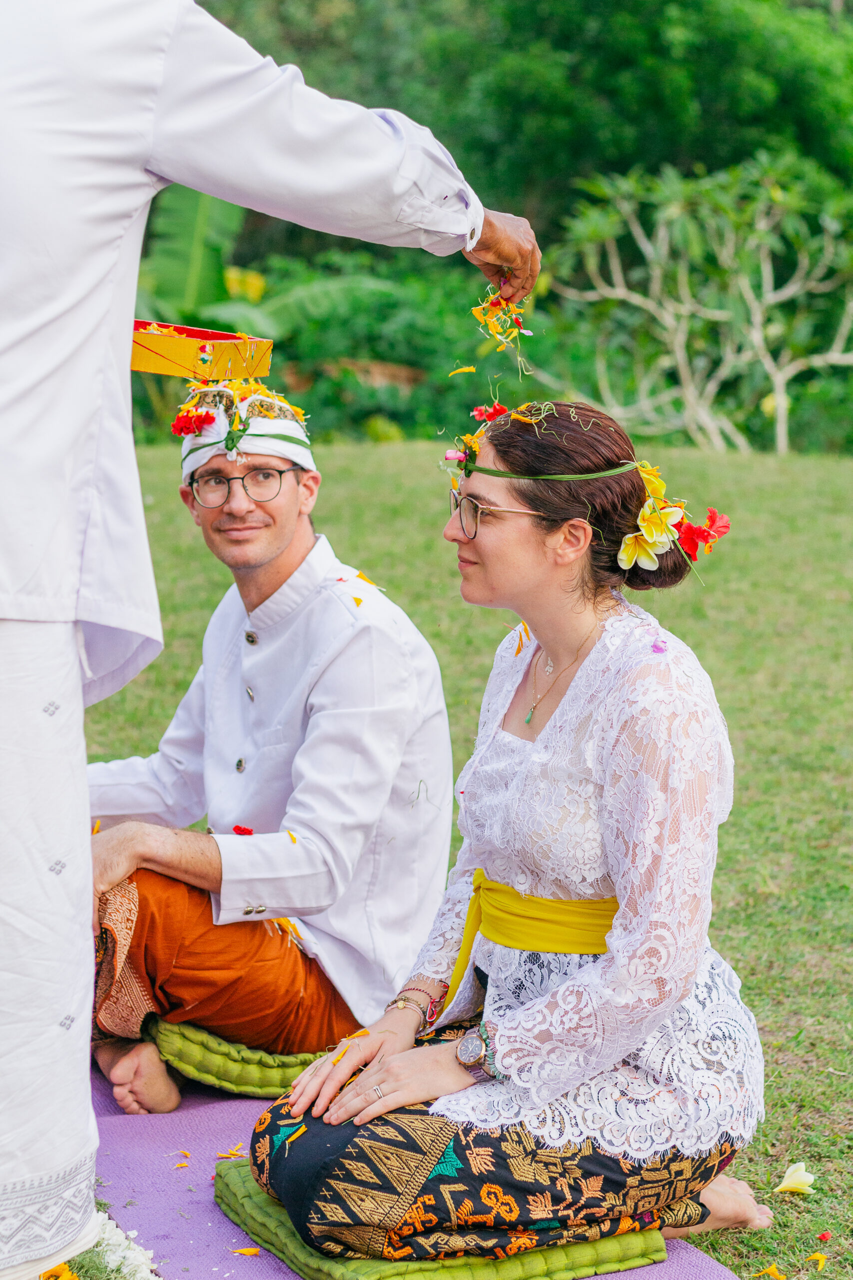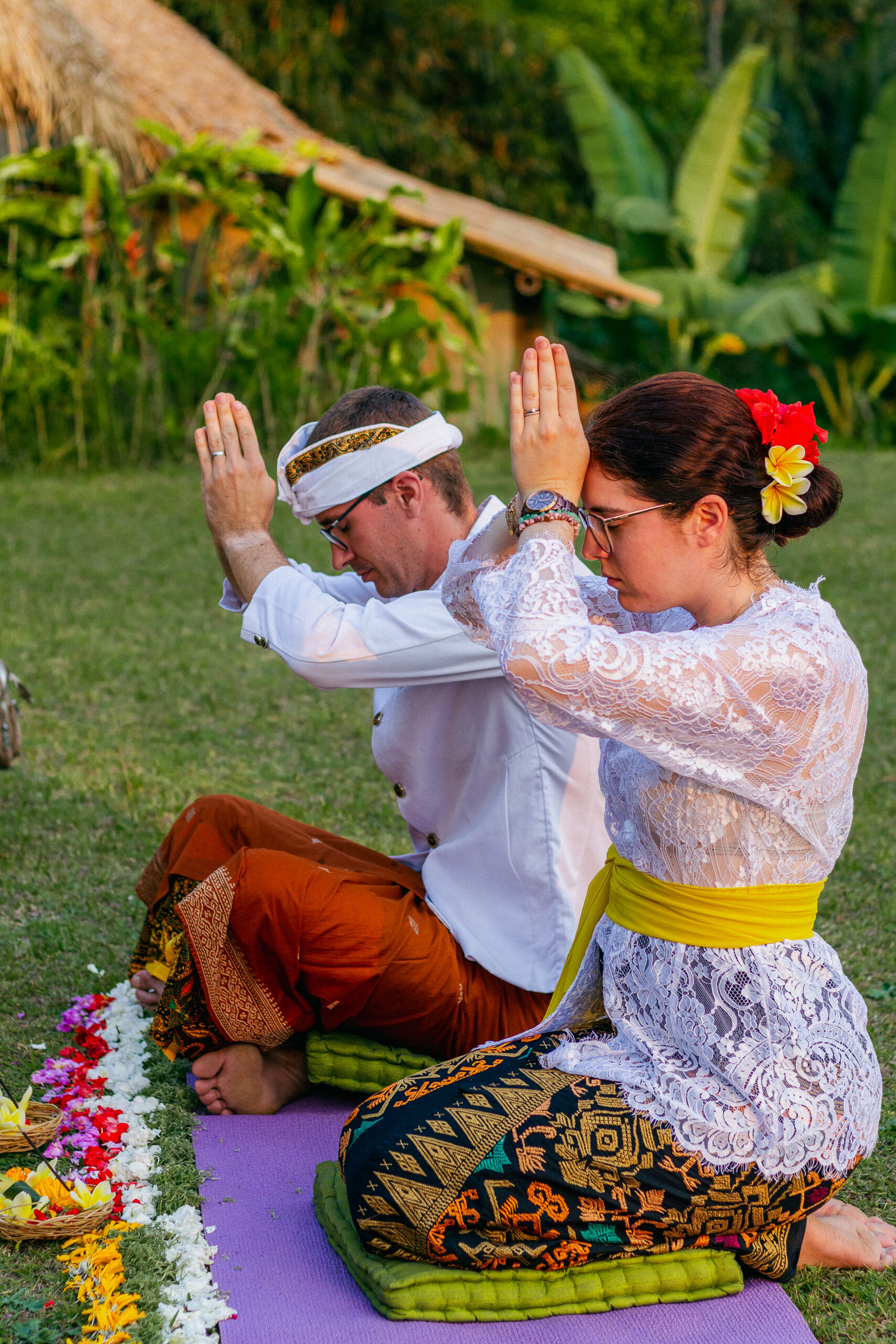 Draped in intricate Balinese attire, every detail told a story of tradition from the delicate flowers for the ceremony to the vibrant fabric, each element honoring heritage and love.