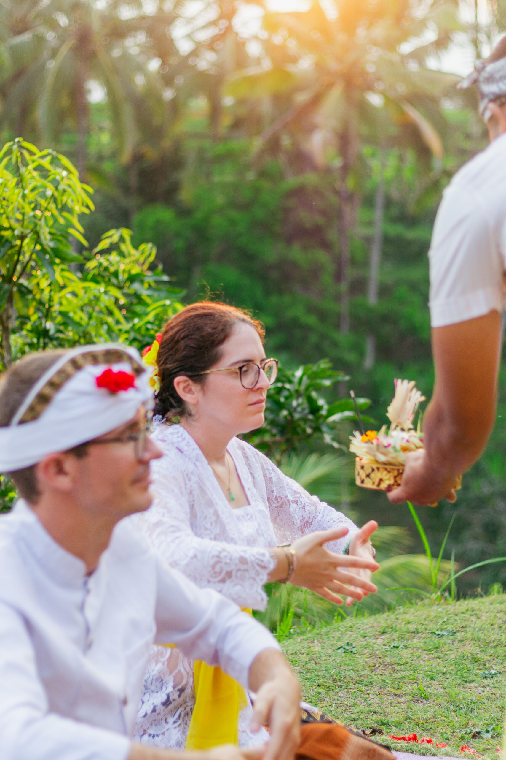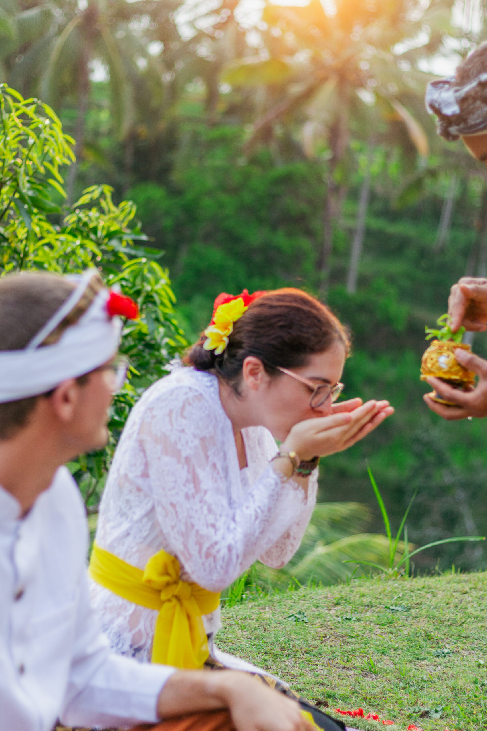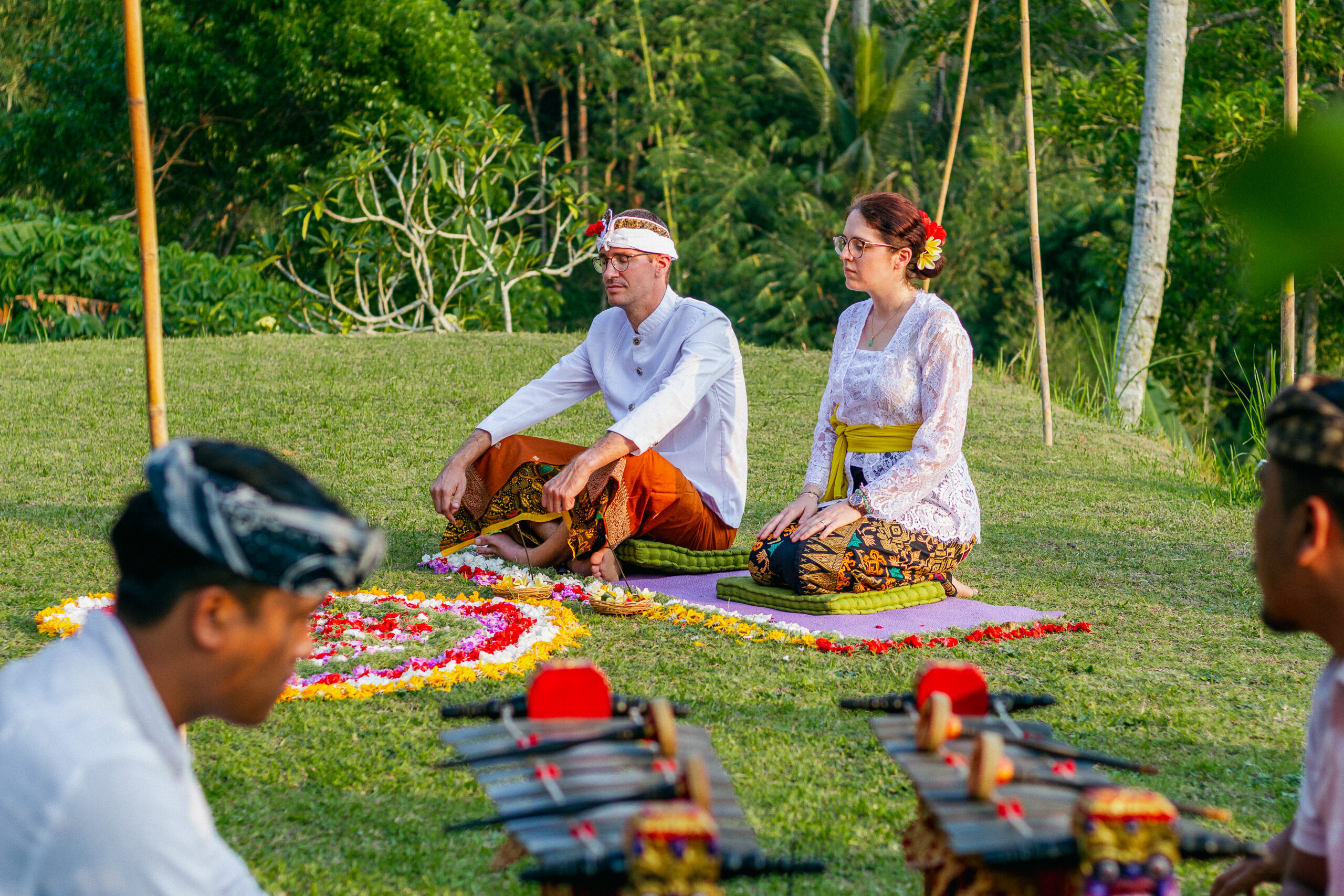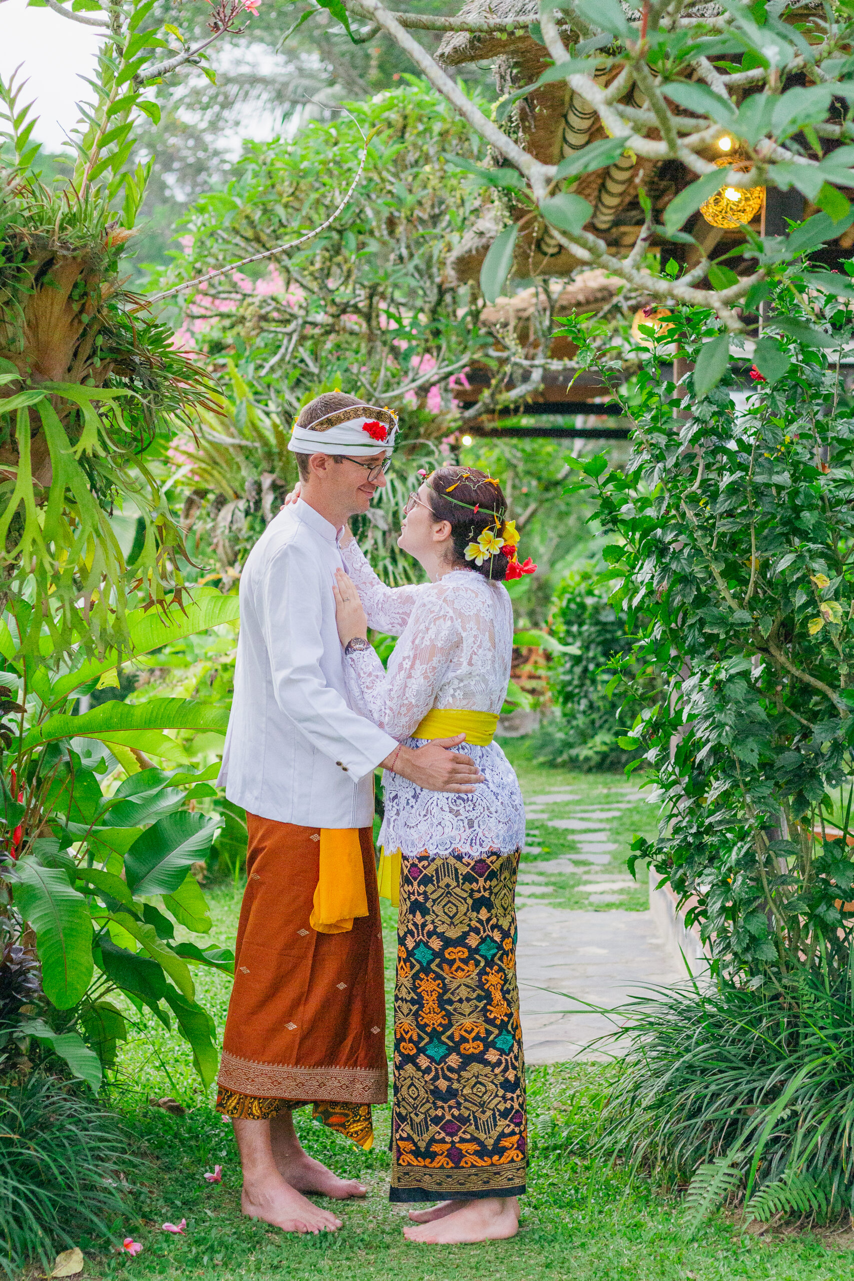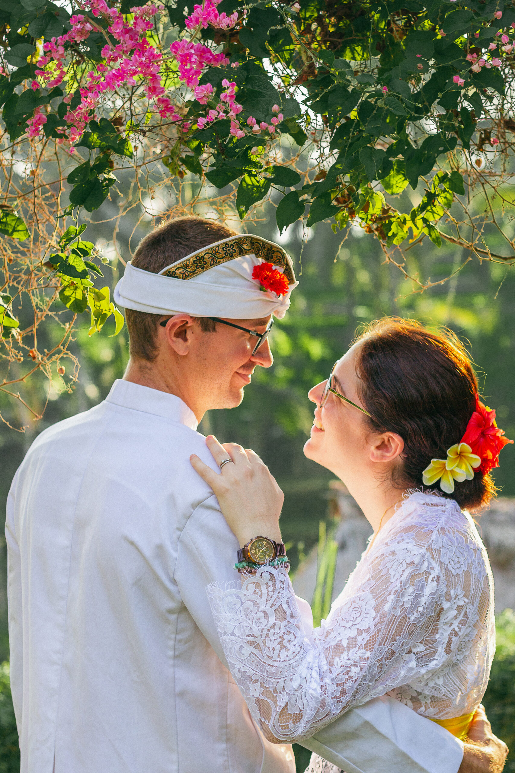 Draped in intricate Balinese attire, every detail told a story of tradition from the delicate flowers for the ceremony to the vibrant fabric, each element honoring heritage and love.