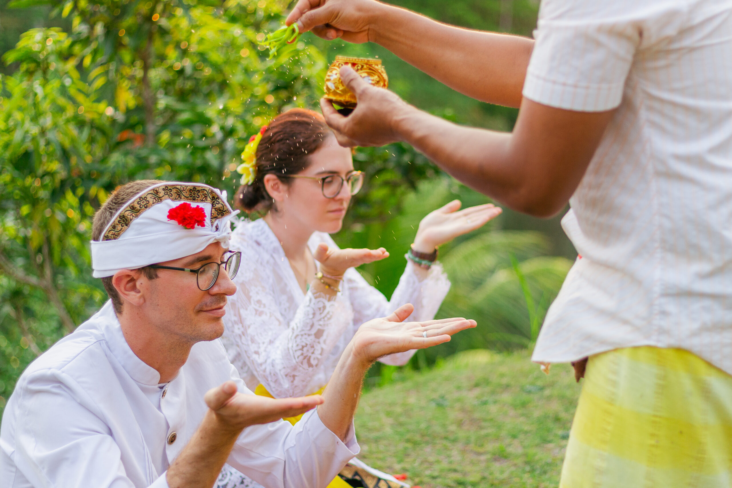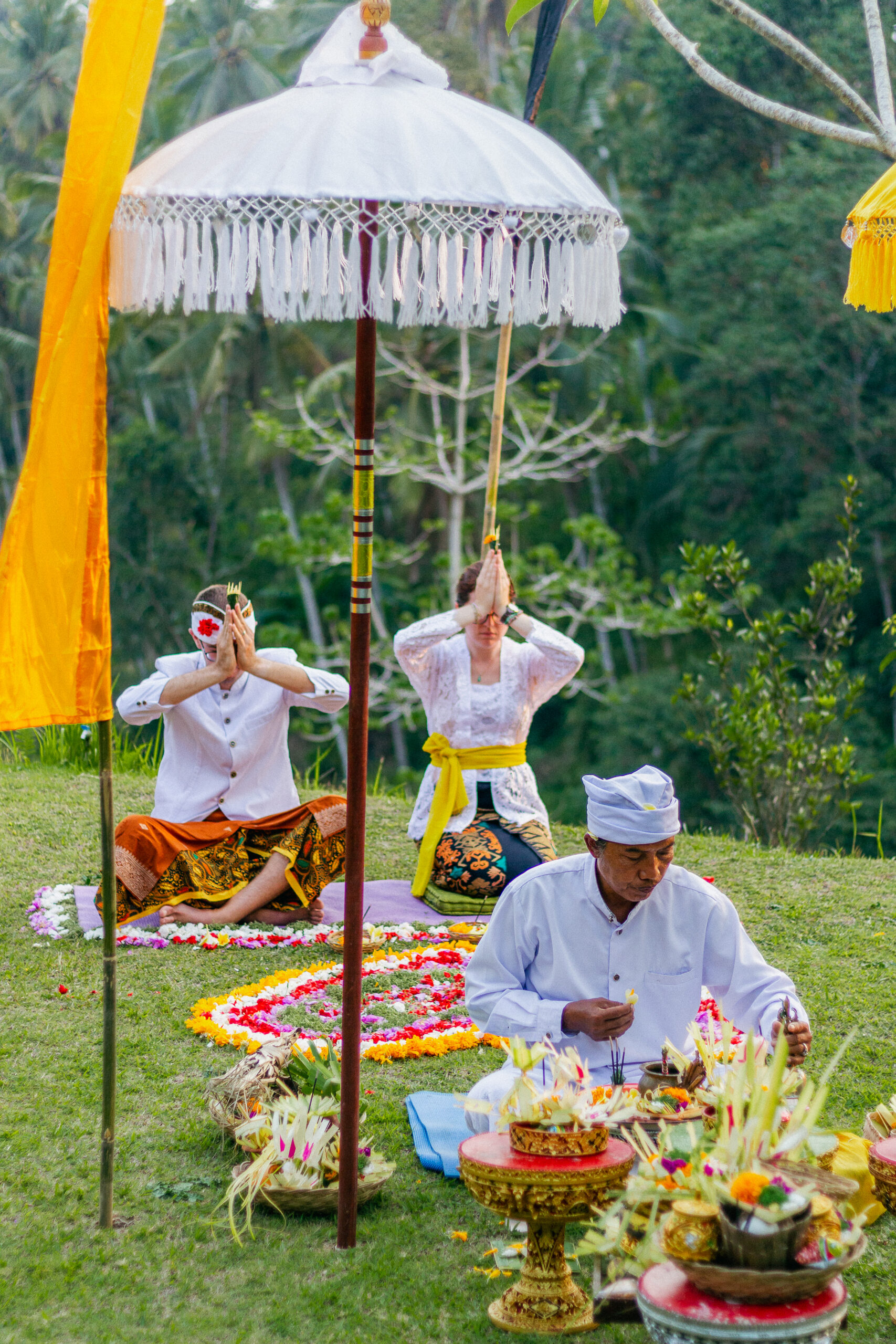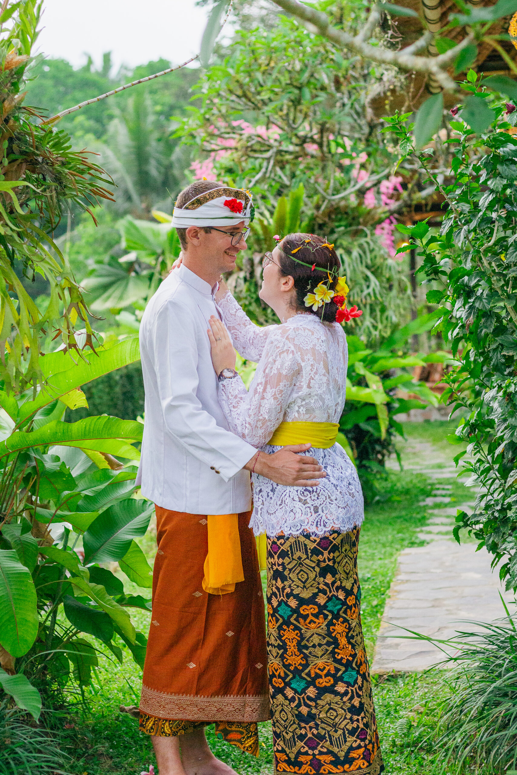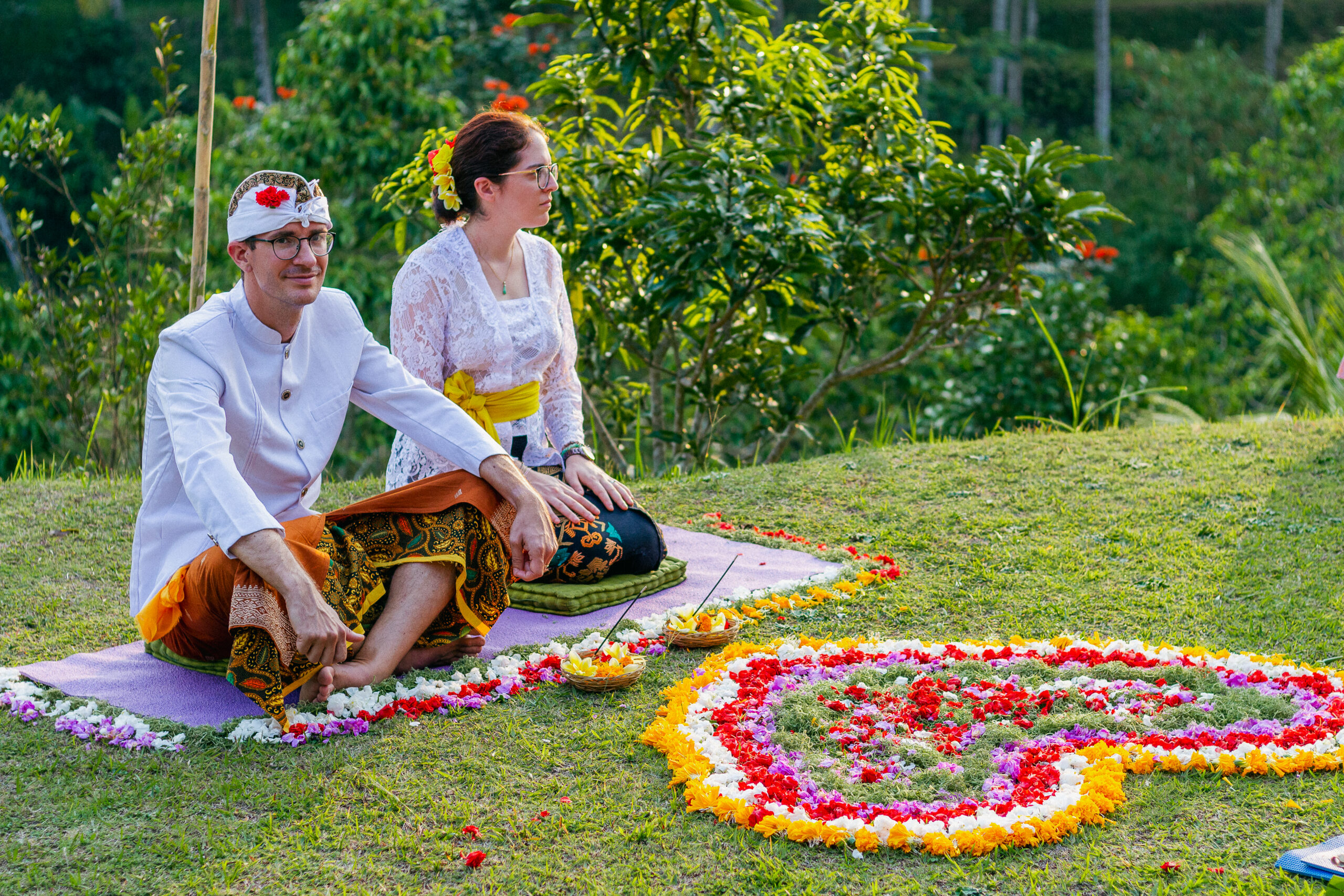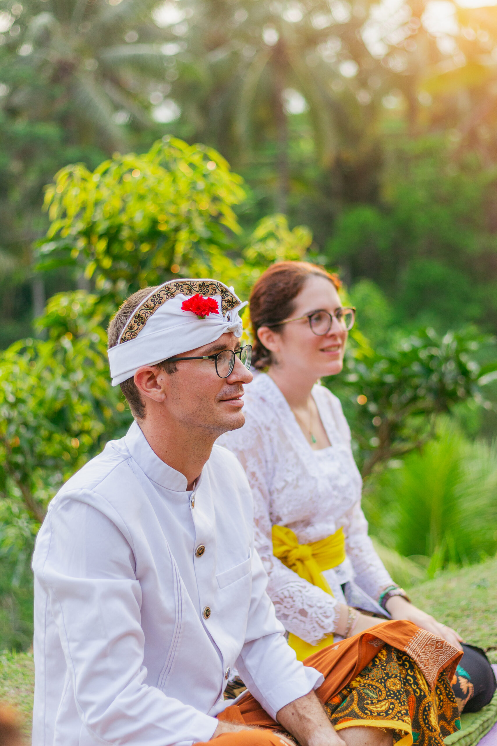 Draped in intricate Balinese attire, every detail told a story of tradition from the delicate flowers for the ceremony to the vibrant fabric, each element honoring heritage and love.